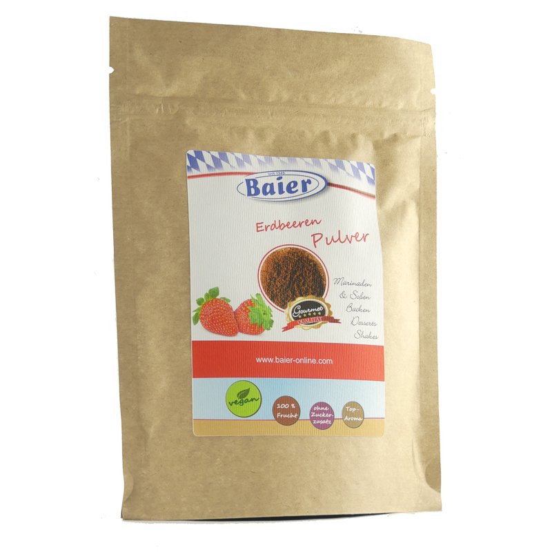 | Baier's Erdbeeren Fruchtpulver | herkömmliches Erdbeeren Fruchtpulver | |
